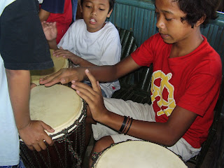 Tadi sore lengkap kami berempat mengunjungi Sanggar Bandulan. Kebetulan tadi lagi ada Pelajaran Main Jimbe dan Petualangan Mencari Hewan Bertulang Belakang. Hwkwkwk ini dia foto2nya…