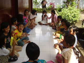 Tadi pagi kami bertiga (minus Vania) mengunjungi Sanggar Mergosono punya Mbak Ayik. Beda sama yang lain, sanggar ini gak punya tempat khusus dan numpang di pelataran SDN Sanggar Mergosono IV. Tempatnya bener2 khas di pemukiman jelata…mepet ‘gunung sampah’ dan deket kali…