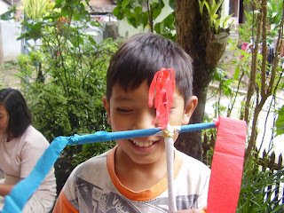Udah lama nggak ke sana, jadi kangen sama anak2nya…hehehe emang sih, di antara semua sanggar secara pribadi rasanya aku paling dekat sama anak2 di sini. Nah, kebetulan tadi Mbak Ayik lagi ngajarin anak2 caranya pegang sumpit…terus kita main “oper sumpit” dan akhirnya menghias sumpit…sementara yang kecil2 pada mewarna…
