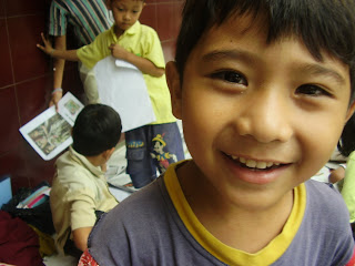 Dari sini aku ambil satu kesimpulan : anak-anak itu memang BUTUH PERHATIAN. Mereka hidup di daerah bantaran kali yang kumuh dan minim akses pendidikan, jadi mereka senang ketika ada orang2 seperti kami yang MAU MEMPERHATIKAN mereka…makanya mereka jadi SEMANGAT dan ANTUSIAS ketika kami mengajarkan hal2 baru.