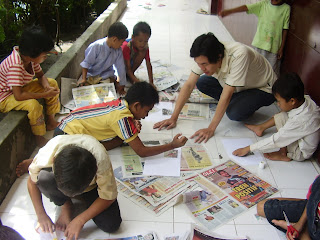 Tau gak???Kita ngerasa anak2 pada bikin kemajuan hari ini. Semuanya ANTUSIAS. Aku suka lihat wajah mereka yang bener2 ngelakuin apa yang kita minta. Kliping mungkin hal baru bagi mereka tapi mereka NIAT melakukannya. Inilah yang aku suka dari anak2 di sanggar ini…semuanya PROAKTIF!